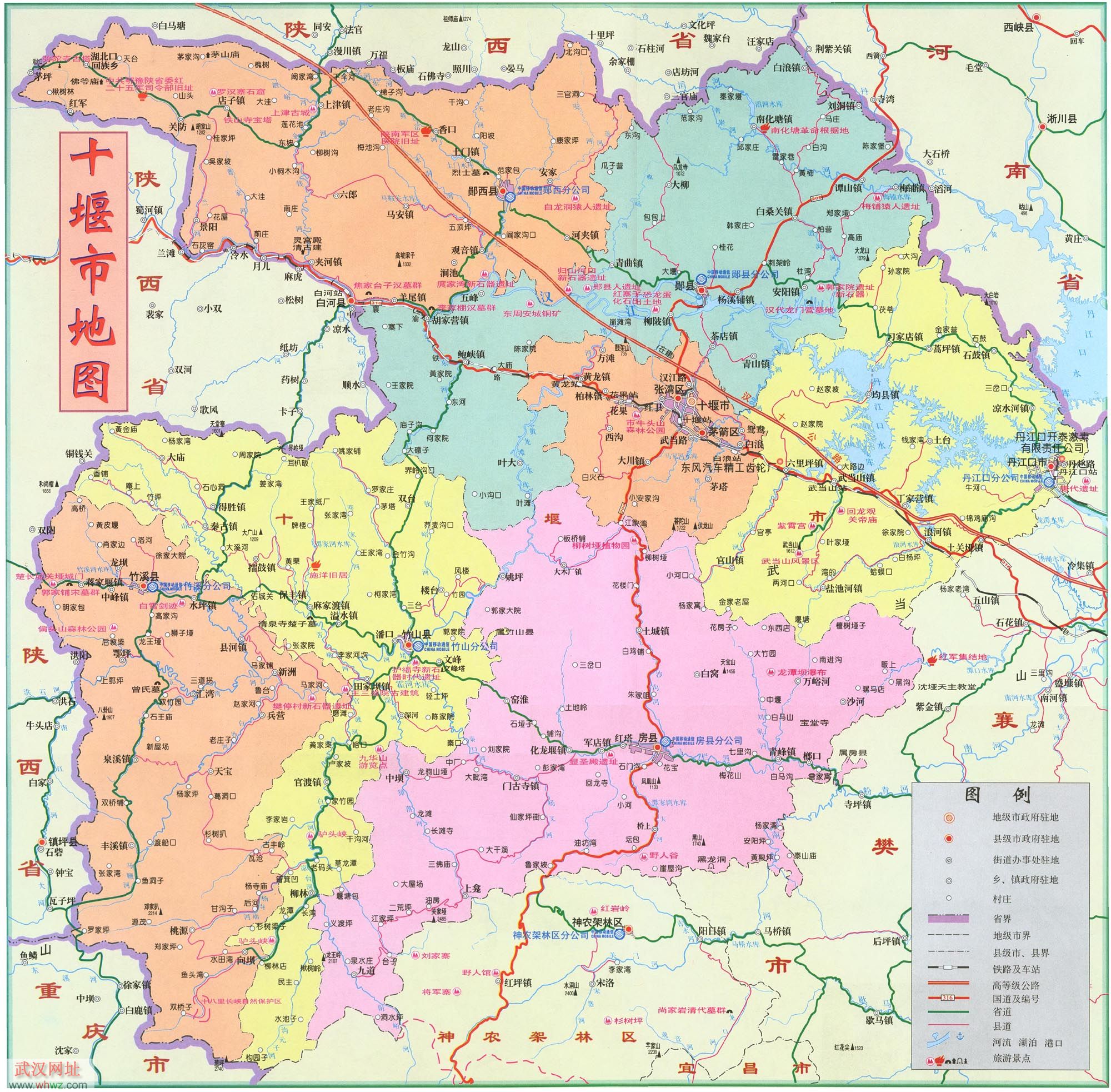 十堰市轄張灣區(qū)、茅箭區(qū)、鄖陽(yáng)區(qū)及丹江口市、鄖西縣、竹山縣、竹溪縣、房縣,下設(shè)13個(gè)街道辦事處、72個(gè)鎮(zhèn)、34 個(gè)鄉(xiāng)、1842個(gè)村委會(huì)、159個(gè)居委會(huì)。