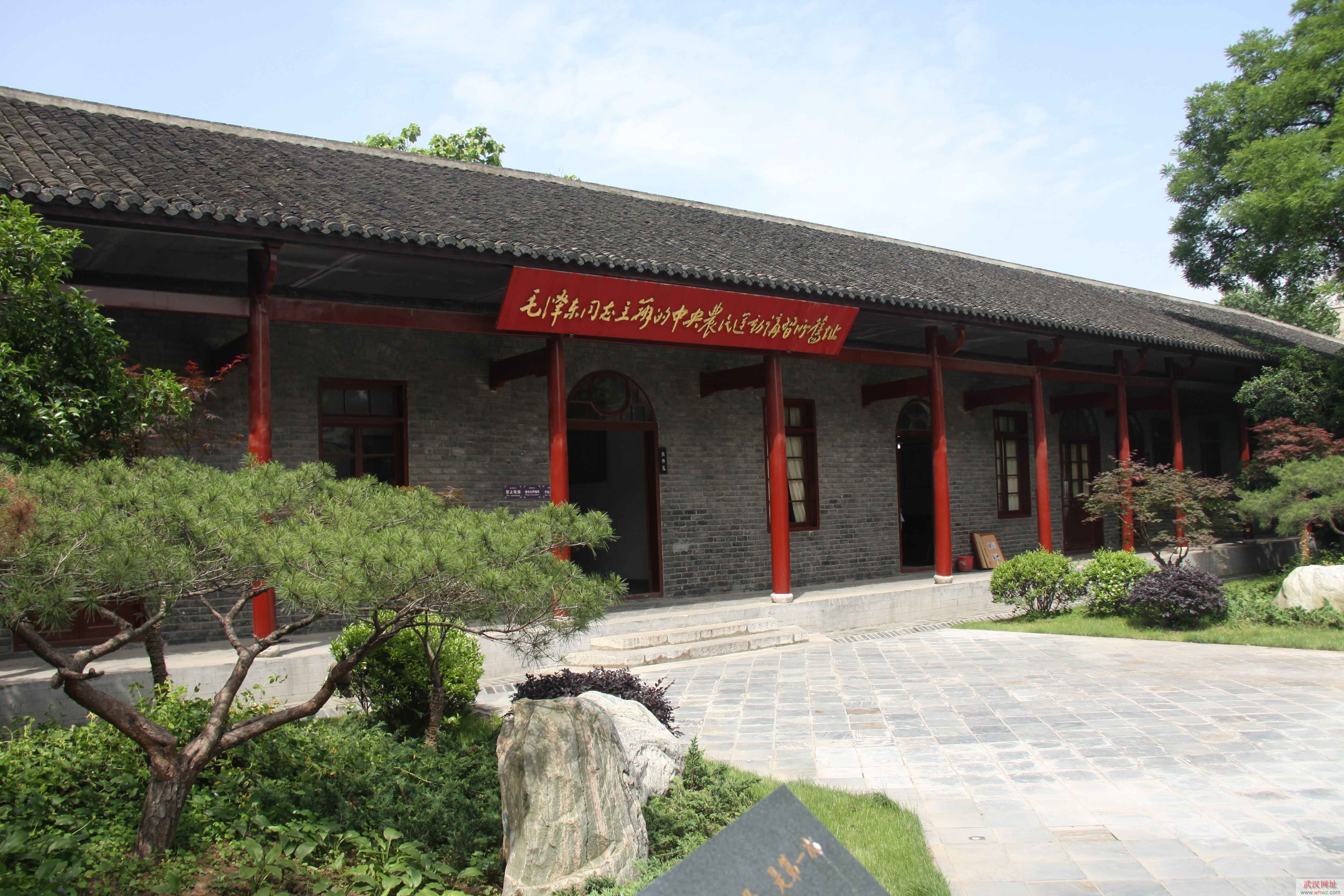 武昌毛澤東舊居位于武昌都府堤41號,是毛澤東1927年主持農(nóng)講所工作并在武漢從事革命活動時的辦公地兼居所,是當時中共中央農(nóng)委的所在地,也是毛澤東、楊開慧一家最后團聚的地方。毛澤東在這里完成了著名的《湖南農(nóng)民運動考察報告》。舊居坐東朝西,磚木結構,青磚灰瓦,四周為硬山榍頭風火外墻,大門為單坡屋檐,墻體有門楣裝飾,朱紅色的板門上裝有門釘、門鈸。占地面積909平方米,建筑面積436平方米,院內(nèi)三進三天井,內(nèi)隔斷均為木質板壁和隔扇門窗,后檐有門,貫通呼應。地面裝有石質雙錢式地漏,廳堂中有亮瓦,采光充分,凈空很高,體現(xiàn)了對武漢氣候特點的適應,具有典型江南民居風格,體現(xiàn)了武漢地域建筑特點。正門額上木質紅色橫匾,上有郭沫若同志題寫的“毛澤東同志舊居”七個金色大字。